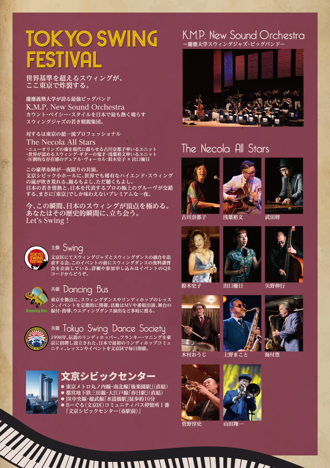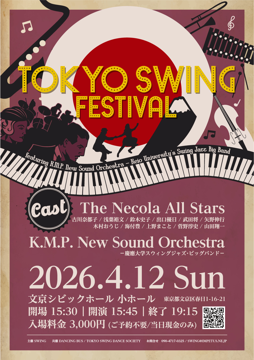 Necola Premium Swingin’ Hop Sunday March 16th, 2025 The doors will open at 5 PM. The first set of the show will start at 5:30 PM. The dance will end at 9:30 PM. Venue: Necola in Tokyo