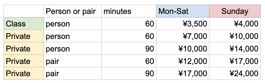 基本的に全てこちらで予約が必要です。実際に何時のイベント・クラスから参加ご希望かを必ずお書きください。