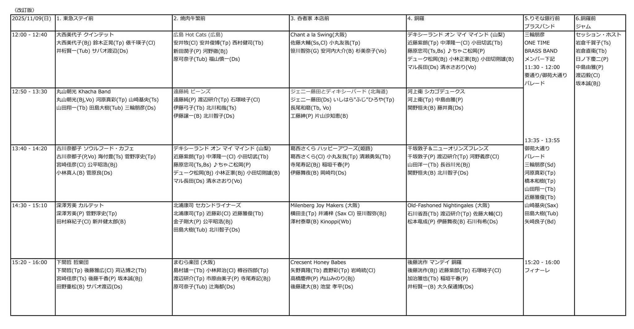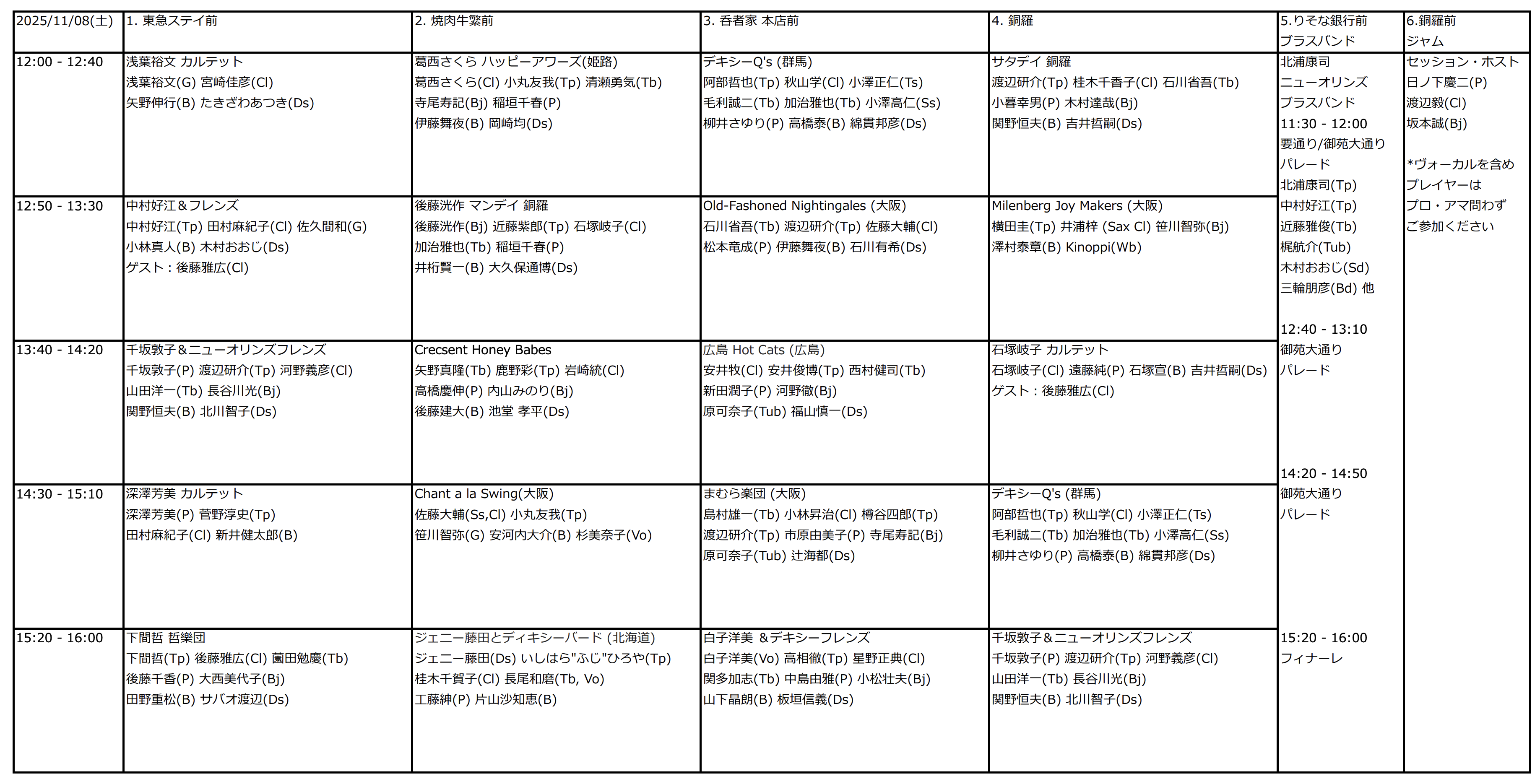I’ve summarized which segments TSDS will dance to in the Google Spreadsheet, so please refer to it. Note that there are many general audience members who don’t dance, so swing dancers should be considerate of those around them. Let’s work together to make it a jazz fest that everyone can enjoy!
