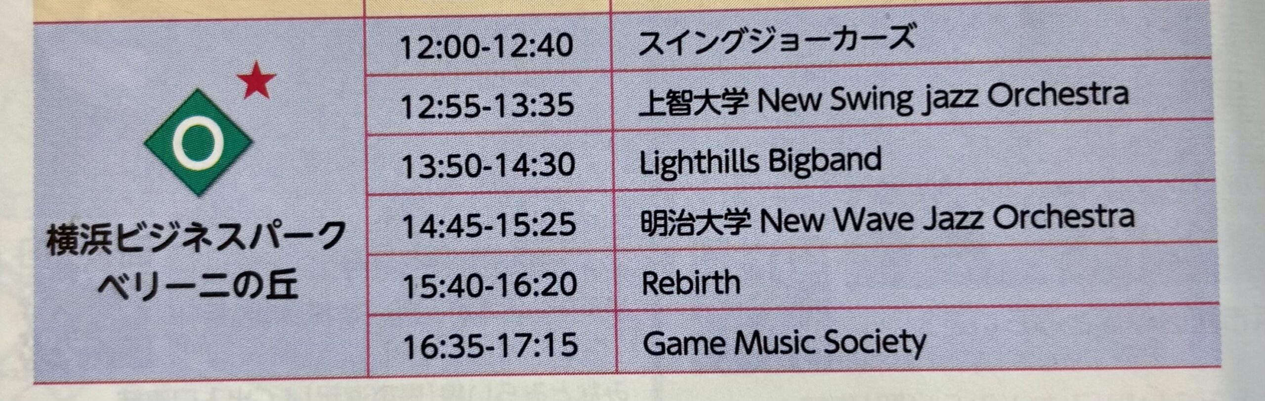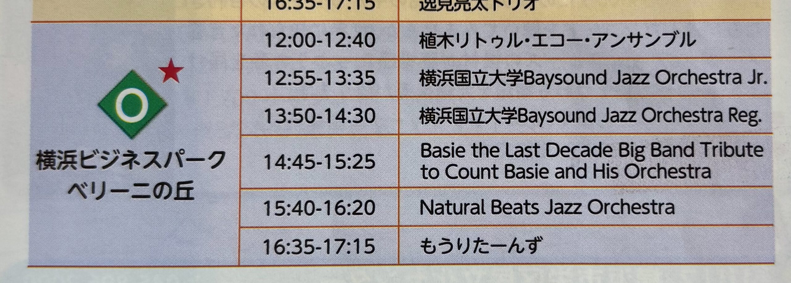 Among them, what stands out on Sunday at venue O is the Basie the Last Decade Big Band Tribute to Count Basie and His Orchestra—quite a mouthful of a name. Well, we’ll just have to trust the name here. I checked YouTube videos of the bands performing before and after them, and it seems the Yokohama National University 横浜国立大学 Baysound Jazz Orchestra Reg. sometimes plays Basie-style music. Their junior counterpart, likely made up of first- and second-year students, might be skippable. I watched videos of the other bands at venue O that day, but they’re likely not danceable for us. So, the conclusion for Sunday is the 13:50–3:25 PM slot for the above two bands. Since this venue is far from the others, the rest are automatically ruled out.
